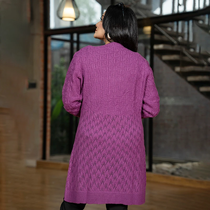 Step into effortless winter elegance with the Purple Bliss Knit Cardigan — a perfect balance of comfort, warmth, and charm. Designed with delicate knit patterns and a soothing purple tone, this long cardigan adds a graceful touch to your everyday winter look.