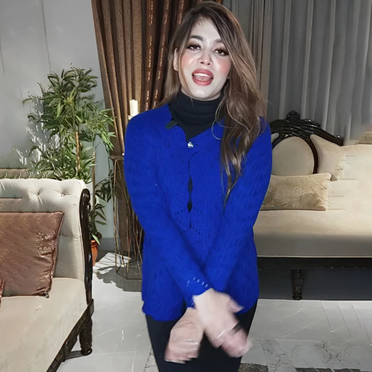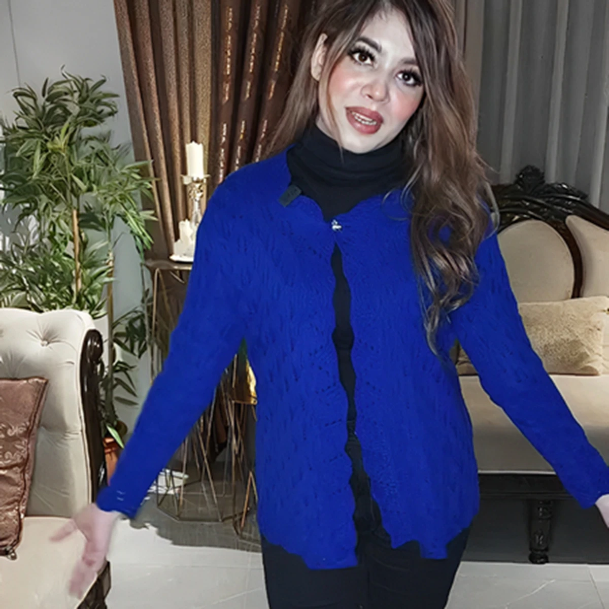 Perfectly tailored with full sleeves and a short-length cut, this cardigan pairs beautifully with turtlenecks, tops, or dresses — ideal for creating both casual and semi-formal looks. Whether you’re heading to work, a dinner, or a cozy hangout, this royal blue beauty adds effortless charm to every moment.