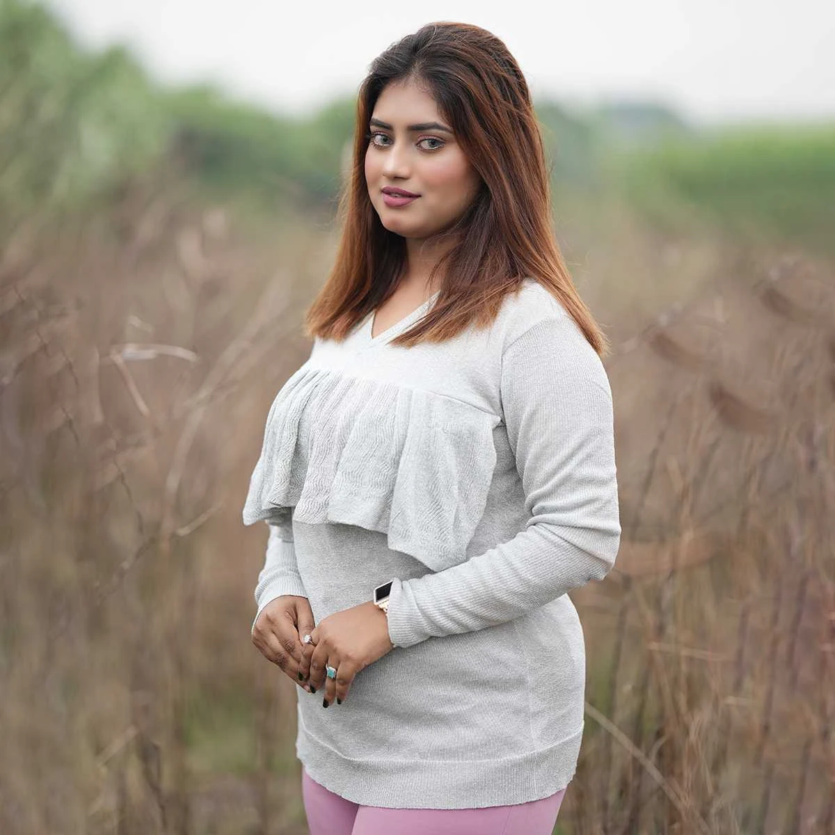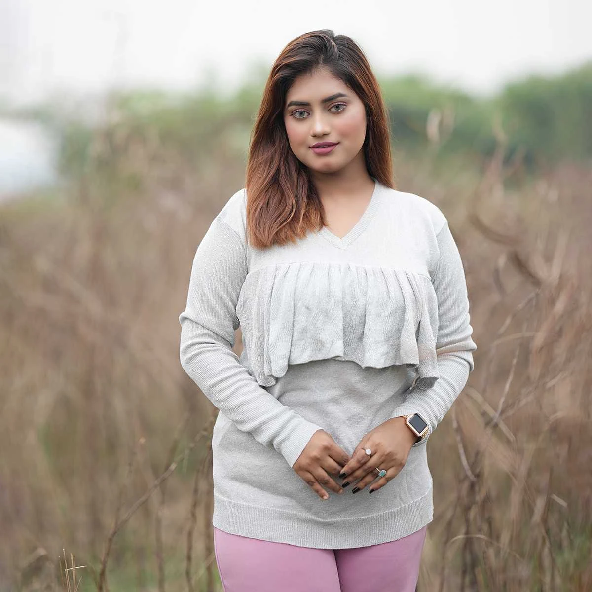 Step into comfort and style with the DM-555 Light Grey V-Neck Layered Knit Sweater. Designed with a soft pleated front layer, this sweater brings a chic twist to your winter collection. Made from a cozy blend of Viscose, Wool, and Rayon, it offers warmth, breathability, and a gentle stretch for an easy fit. Perfect for both casual days and light outdoor wear.